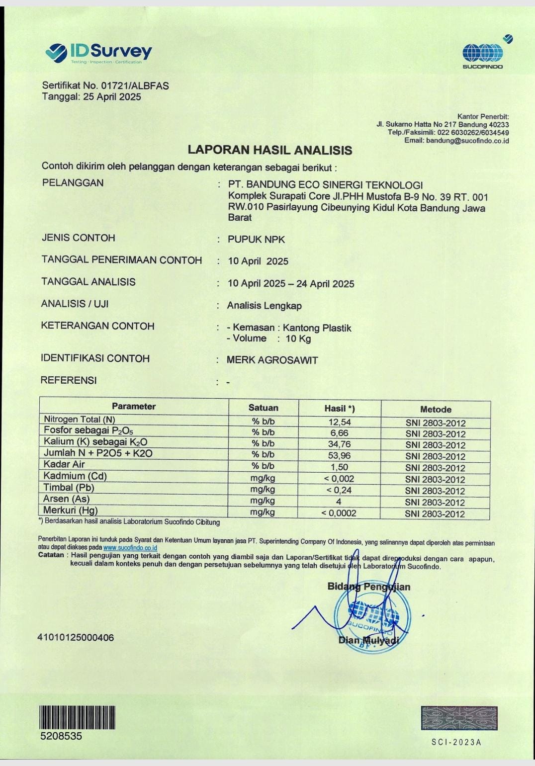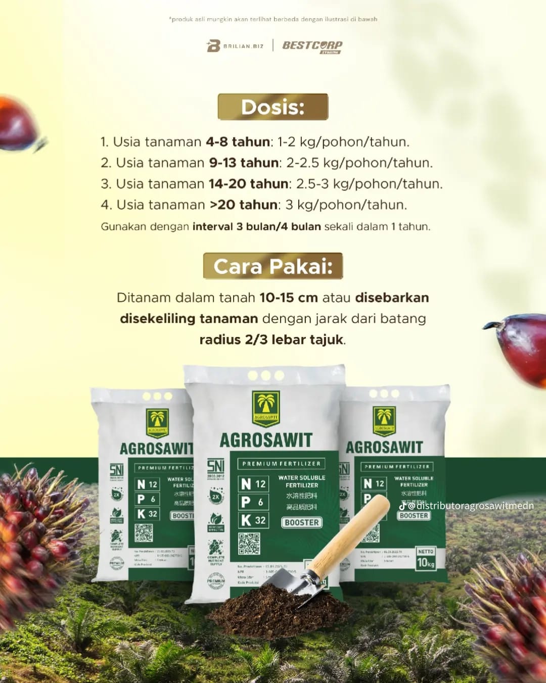 Pupuk NPK Agrosawit memiliki daya larut d daya serap tinggi sehingga efisiensi pemupukan meningkat. Petani bisa menghemat biaya operasional tanpa mengurangi hasil panen, karena nutrisi langsung diserap tanaman secara optimal. Pupuk sangat cocok untuk tanaman sawit.